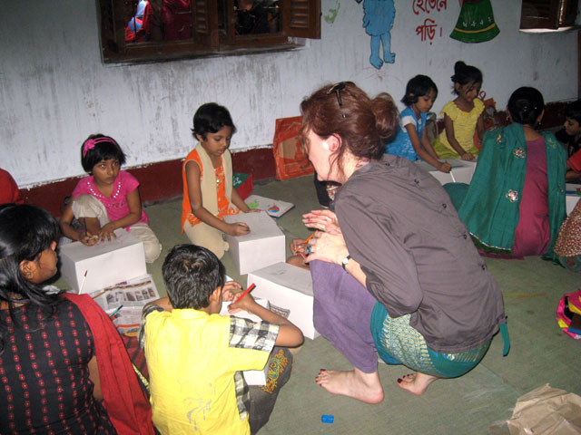 Working with schools in Dakha and Ahmedabad as part of the Sensing Place Residency with AFineLine, V&A Museum of Childhood, The Harley Gallery, Britto Trust and Arts Reverie