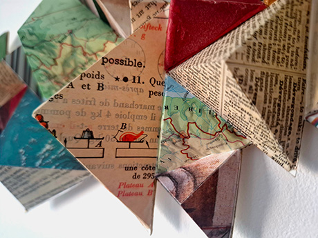 For the 2017 Art Car Boot Fair on Folkestone's Harbour Arm, Thurle made a series of playful geometric works in which pages of text are cut and folded to form pyramid relief sculptures. 20X20x5cm, each piece was carefully constructed from old dictionaries and encyclopedias and presented in a takeaway pizza box. The takeaways proved highly popular. More to follow.